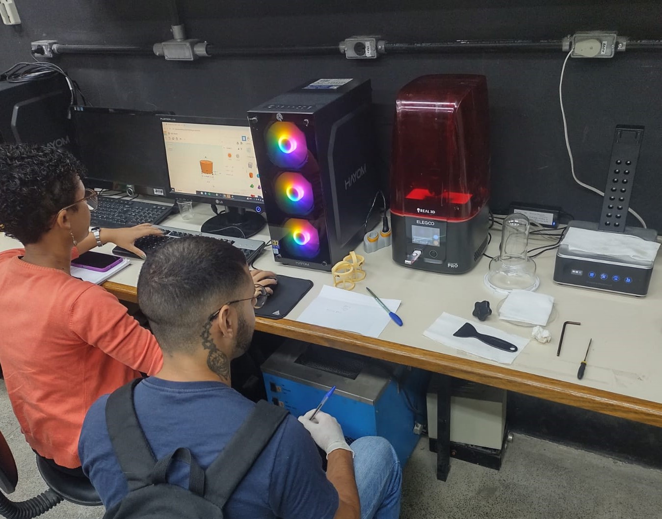 Pesquisa e prototipação. Lis Vieira (frente) e Luísa Tertuliano (fundo)